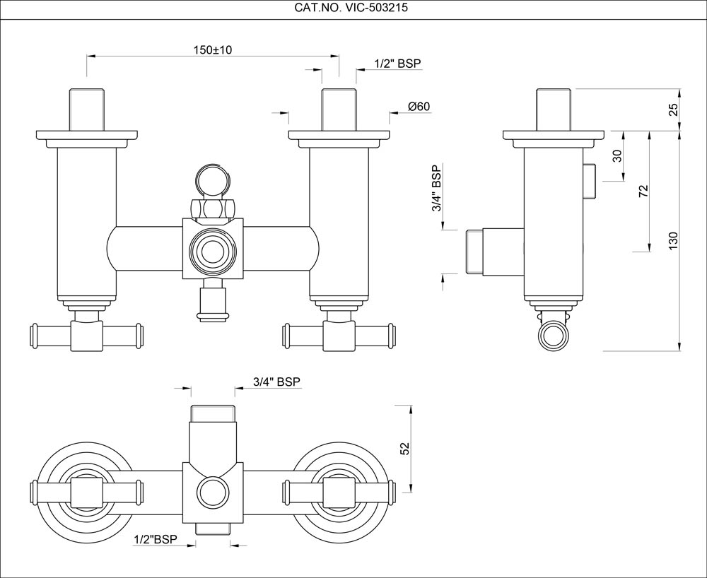 2 Hole Shower Mixer with Provision for Connection to Exposed Shower Pipe (VIC-5031211 & VIC-503555) & Hand Shower