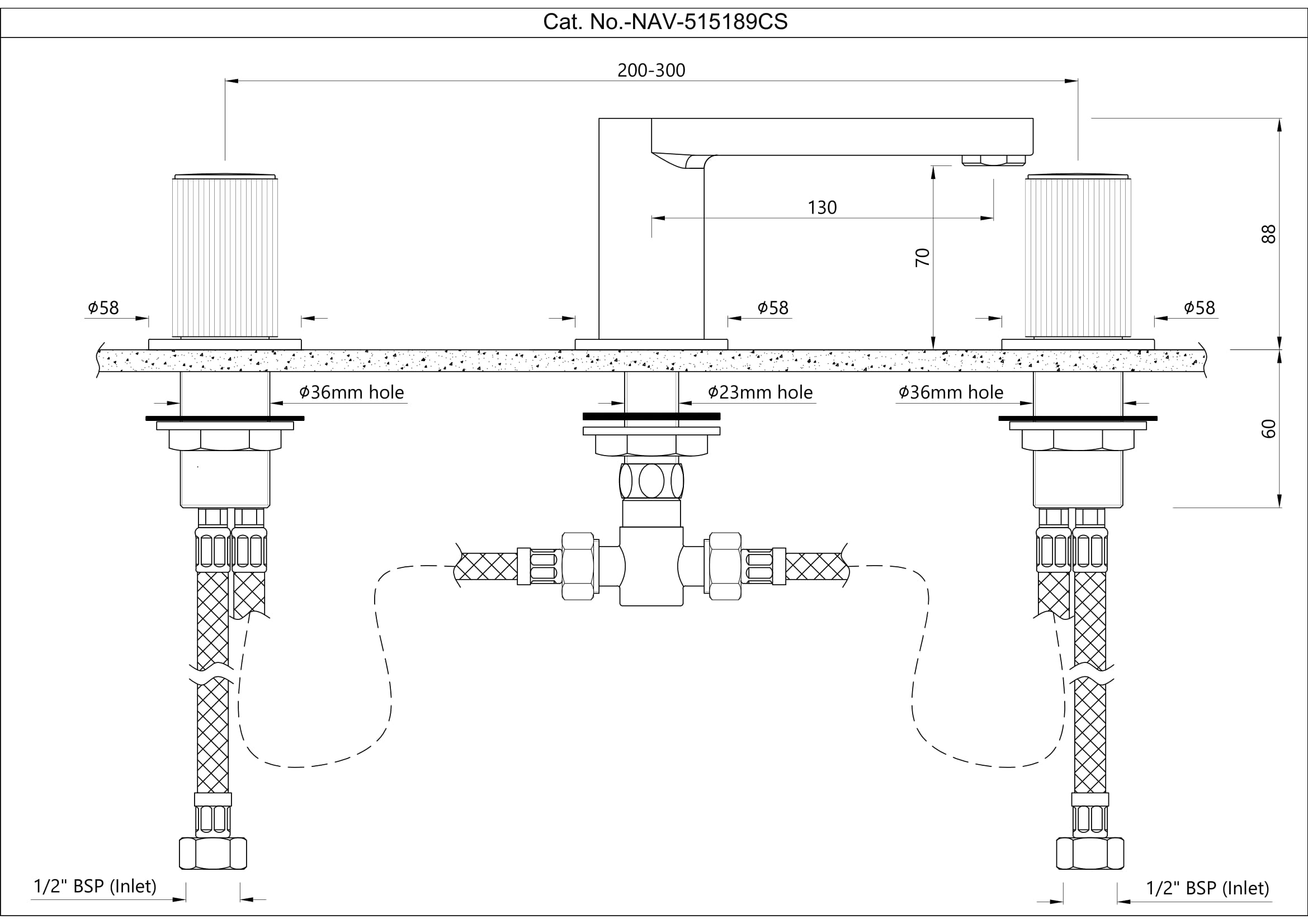 3-Hole Basin Mixer with Casted Spout, without Popup Waste