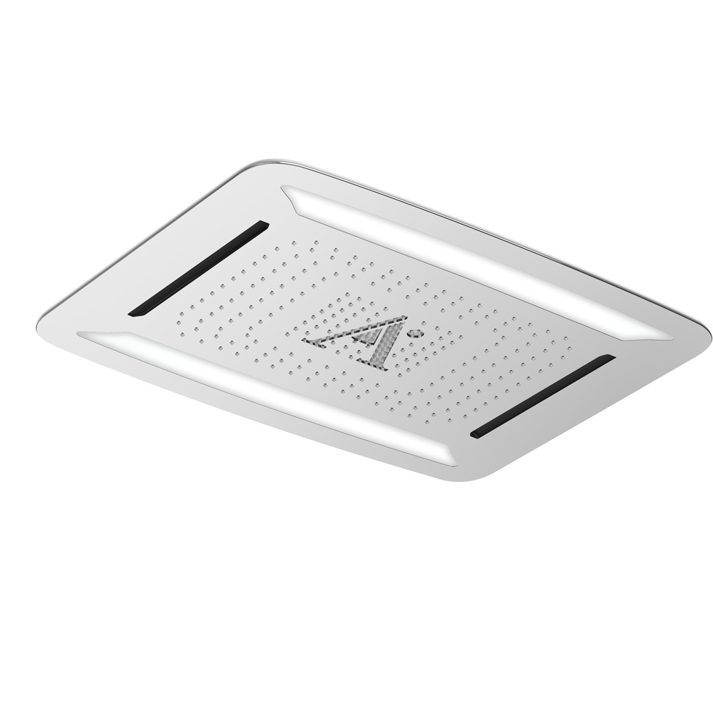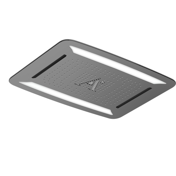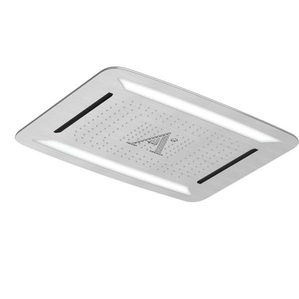 Description: Rainjoy 600X472mm with Chromotherapy (RGB) LED lights with Flow Restrictor 8.0 LPM at 3 Bar Pressure & installation kit for false ceiling 3-functions (Rain, Intense & 2 X Waterfall)