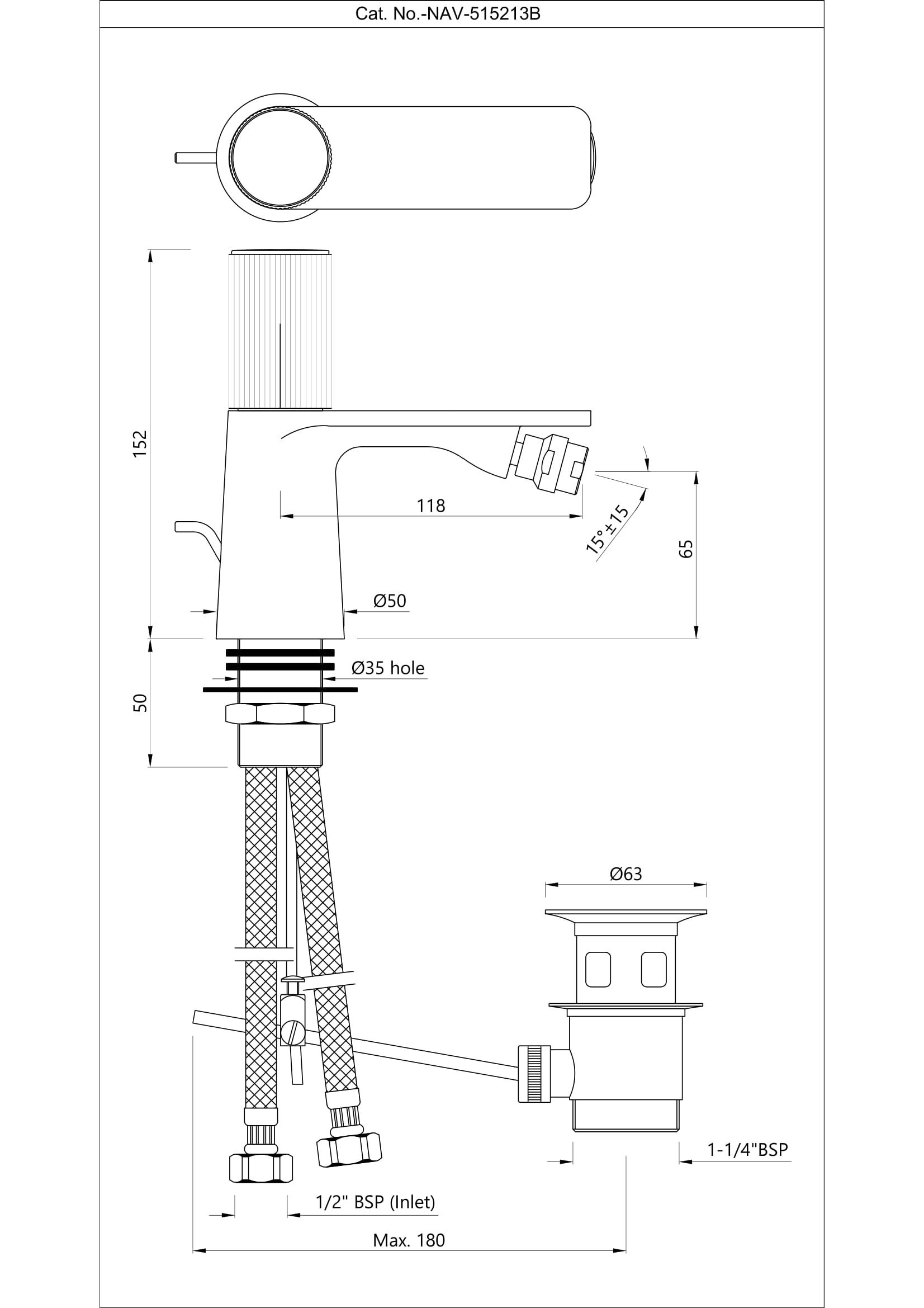 Bidet Mixer with Popup Waste System with 375mm Long Braided Hoses
