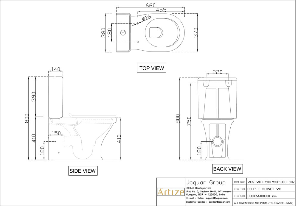 Rimless Bowl With Cistern For Coupled WC, UF Soft Close Slim Seat Cover, Hinges, Dual Flush Cistern Fitting With Back Inlet, Fixing Accessories, Accessories Set, Size: 380x660x800 mm, P Trap- 180 mm