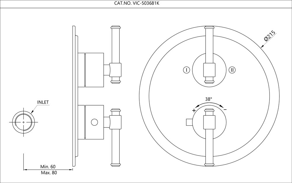 Exposed Part Kit of Thermostatic Shower Mixer with 2-way diverter (Compatible In-wall Part VIC-503681C is sold separately)