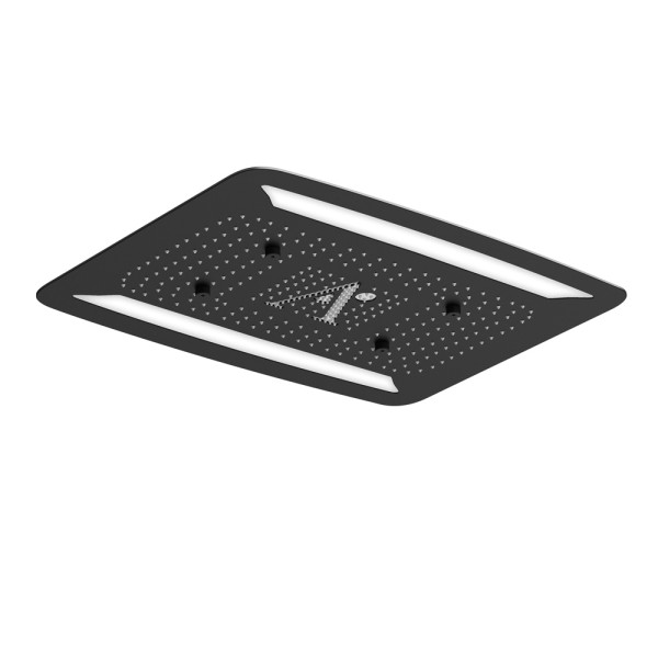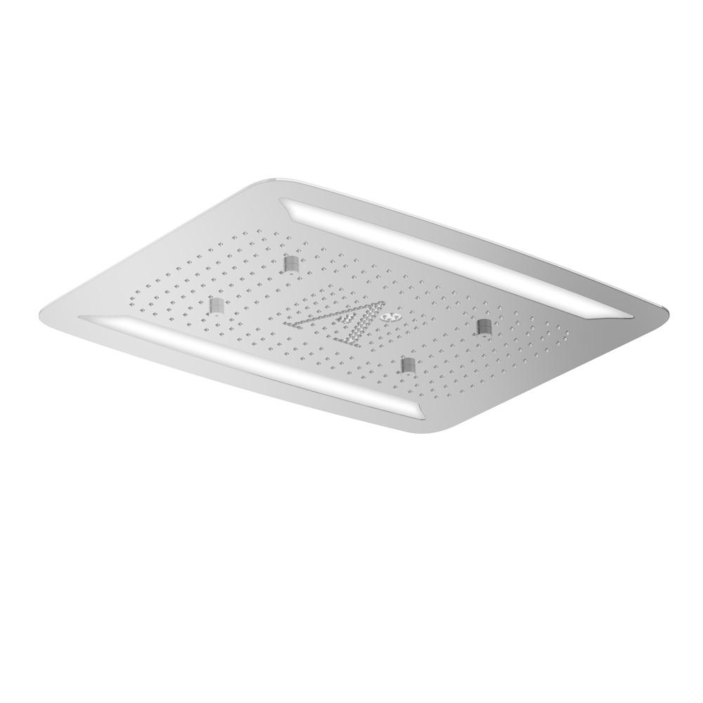 Description: Rainjoy 600X472mm with Chromotherapy (RGB) LED lights with Flow Restrictor 8.0 LPM at 3 Bar Pressure & installation kit for false ceiling 3-functions (Rain, Intense & 4 X Mist)