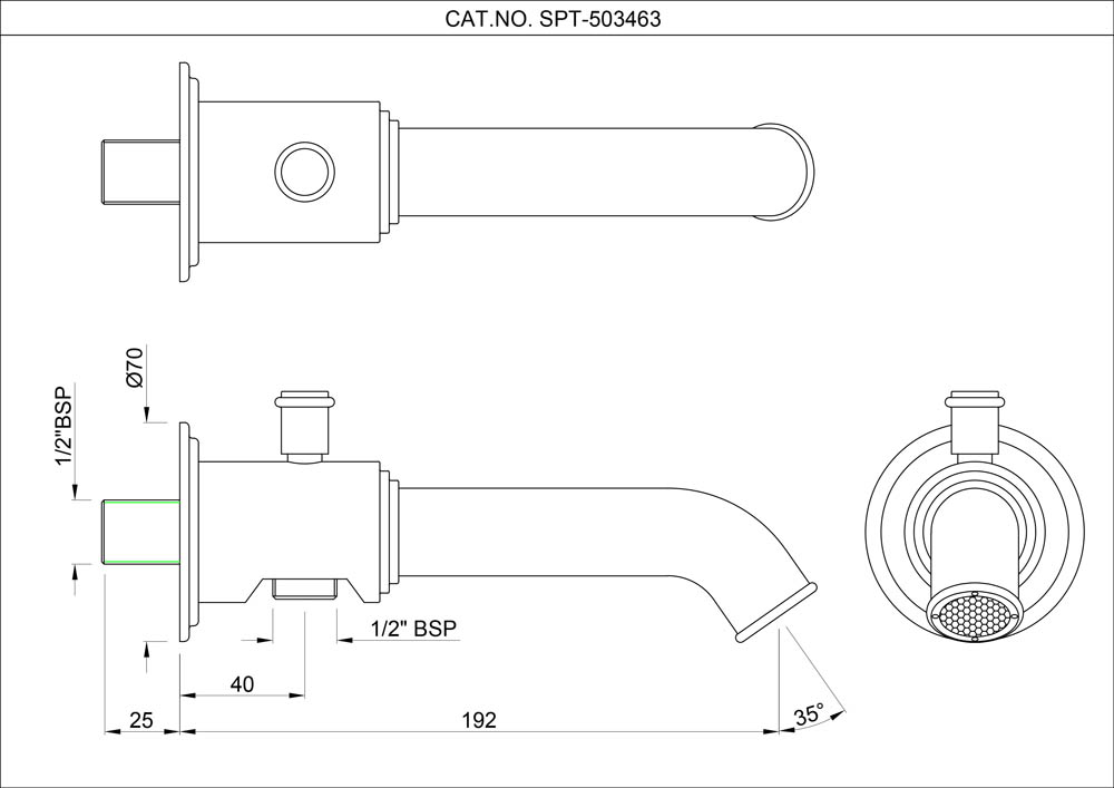 Vic Bath Spout with Diverter & Wall Flange