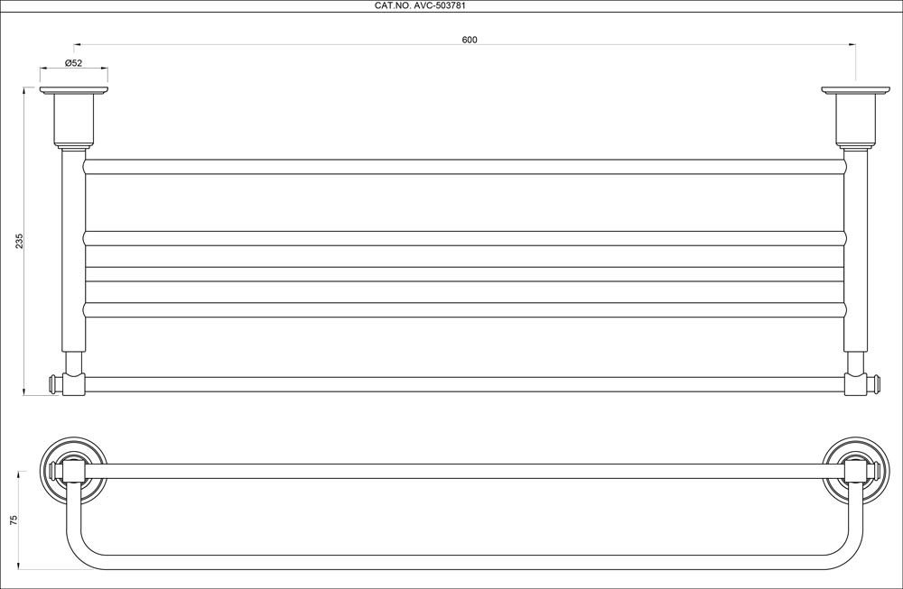 Towel Rack 600mm Long with Lower Hanger