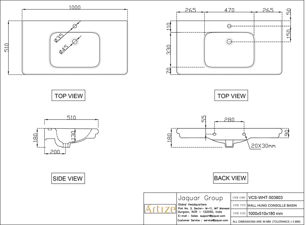 • Jaquar reserves the right at its sole discretion, to change/modify/alter any product specification at any time without notice, where improvement can be effected in design, development and dimensions.
