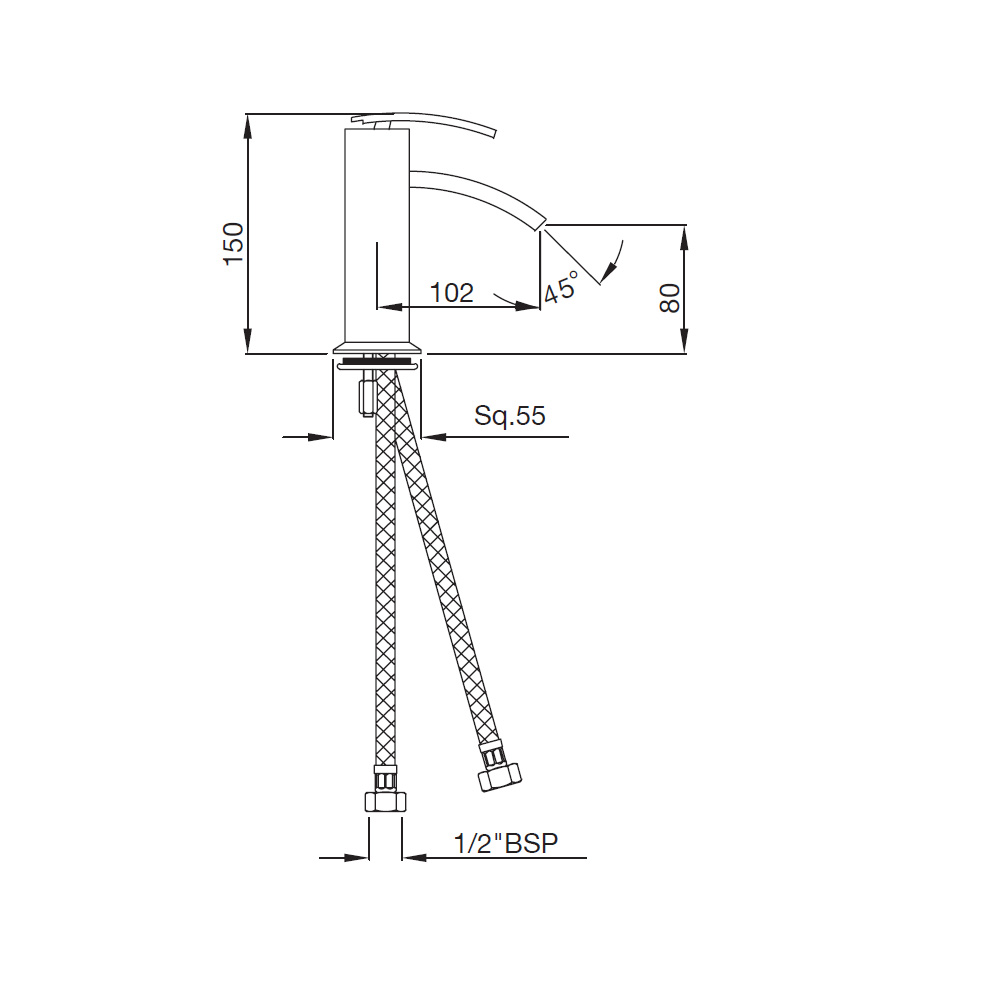 Single Lever Basin Mixer without Popup Waste, with 375mm Long Braided Hoses