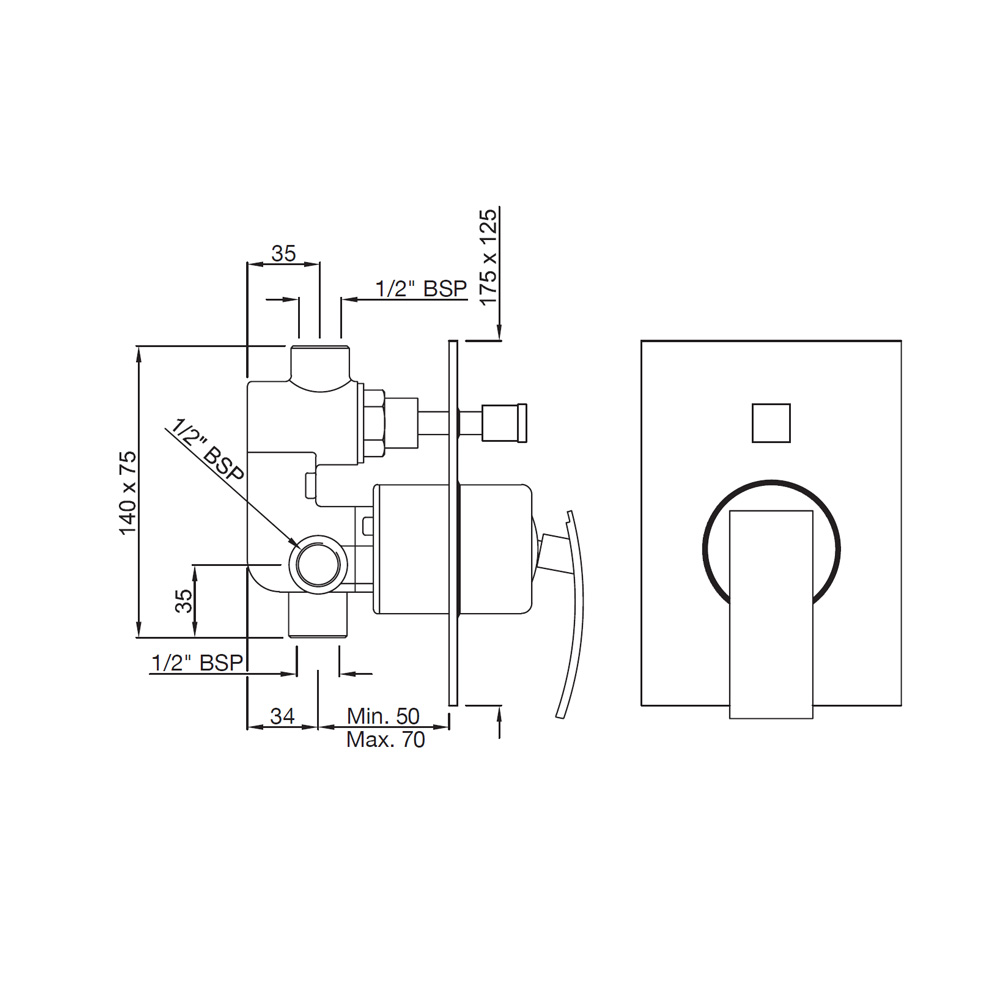 Single Lever Hi Flow In-wall Diverter for Bath & Shower Mixer (With Exposed and In-wall parts)